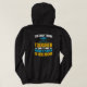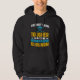 Sweat - shirt à capuche à thème de hockey pour la maman de hockey avec des rondelles de hockey et des bâtons avec le texte de blanc, jaune et bleu qui lit La seule chose plus dure qu'un joueur de hockey est Sa maman!