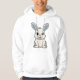 Vector illustration of a smiling white bunny with large, sweet eyes, long, blue ears, and a pink nose, in a cartoon style, on a black background. Suitable as a logo or mascot.