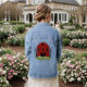 Cette jolie veste Denim dispose d'une grange rouge de style champêtre avec une chèvre et un mouton.