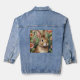 La veste en jean Blush Blooms & Bunny Dreams comprend un petit lapin d'aquarelle blanc et bronzé, niché entre des fleurs roses pastel et des feuilles verdoyants, ajoutant une touche délicate et chaleureuse à votre garde-robe de printemps.