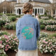 "watercolor cherry blossom denim" "italian green background jacket" "botanical floral fashion art" "spring nature inspired wear" "artistic denim outerwear" "romantic floral style" "statement jacket"