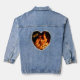 Avec l'image photographique des flammes éblouissantes et un coeur de feu brûlant, cette veste en denim unique est vraiment chaude. Les flammes réalistes d'orange contre noir sont frappantes. Personnalisez avec les initiales. C'est une photo de feu originale de JLW_Photography.
