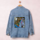 Belle Veste Denim avec ma photo d'un magnifique Cheval de Carousel. Sa crinière est d'or brillant et il y a un ruban bleu autour de son cou et orné de roses jaunes, oranges et rouges.