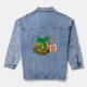 Un petit dragon vert est installé sur une planche à découper en bois sur un plan de comptoir de cuisine. Les pâtisseries comme les biscuits, les muffins et les cupcakes sont tout autour du dragon de cuisine verte.