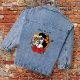 Un crâne à sucre est assis derrière une femme portant une journée de maquillage de crâne à sucre mort sur le tout dessiné dans un style Art nouveau.