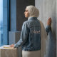 Celebrate your wedding weekend in "Quiet Luxury" with this personalized light-wash denim jacket. Designed for the modern bride who values minimalist elegance, this piece features sophisticated blush pink calligraphy paired with a clean ivory serif subtext.