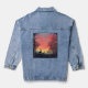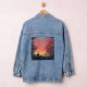 Scène de campagne au dos d'une veste en jean. Belle silhouette de 2 cerfs au coucher du soleil. Une belle décoration pour une veste. J'espère que vous apprécierez votre nouvelle veste.