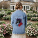 Une licorne noire avec des fleurs rouges, violettes et bleues sur fond de violet clair