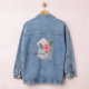 Une délicate aquarelle composée d'une fleur rose fleurie, de feuilles verts doux et d'une plume monochrome. Cette oeuvre est rehaussée de formes géométriques abstraites, dont un carré rose texturé, un cercle gris, une boucle ovale dorée et des pois blush.
