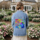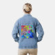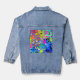 Cette veste en denim comporte une section d'un graffiti numérique qui a toutes les couleurs vives du poisson d'eau salée. Plusieurs nuances de bleu sont mélangées avec le jaune, orange, vert citron, rose, aqua, noir. Les différentes textures et opacities donnent une profondeur de conception. Partie d'une série en trois parties. Voir mon magasin pour plus de détails.