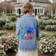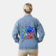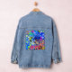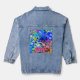 Cette veste en denim comporte une section d'un graffiti numérique qui a toutes les couleurs vives du poisson d'eau salée. Plusieurs nuances de bleu sont mélangées avec le jaune, orange, vert citron, rose, aqua, noir. Les différentes textures et opacities donnent une profondeur de conception. Partie d'une série en trois parties. Voir mon magasin pour plus de détails.