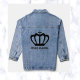 Cette belle veste a une couronne avec une croix et les mots "Jésus est roi" ci-dessous. Si vous ne voulez pas le graphique ou les mots, supprimez-les simplement ! Profitez de votre nouveau Jésus est la veste King Denim !