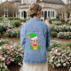 Un elfe de Noël moderne joyeux et mignon tenant une veste de boîte cadeau. Le texte peut être personnalisé.