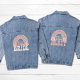 Apportez de l'amusement, de l'éclat et des vibrations rétro à votre célébration avec cette veste en jean de fête de Bachelorette Retro Rainbow ! Avec un design de arc-en-ciel pastel groovy avec des fleurs de marguerite et un lettrage "The Bride" en gras, cette veste est le mélange parfait de charme vintage et de style moderne. Idéale pour la mariée, cette veste en jean personnalisée est la déclaration de tenue ultime pour les fêtes de bachelorette, les week-ends entre filles et les célébrations de destination. Associez-la à vos bottes ou robes préférées pour une ambiance cool et sans effort qui est aussi amusante et inoubliable que le week-end lui-même. Une veste "The Party" coordonnée est disponible pour la troupe de bachelorette.