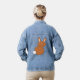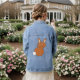 Cette superbe veste en denim présente une image adorable d'un joyeux lapin de Pâques créé à l'aide d'art vectoriel. Le lapin est brun avec une queue blanche. Il a un grand sourire sur son visage, tout comme un lapin de Pâques devrait.