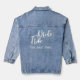 Veste en denim pour mariage avec écriture moderne et personnalisable avec les noms, lien avec la mariée, maman, membre de la famille, amie, demoiselle d'honneur, et/ou nom.