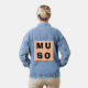 Portez cette veste design en denim avec un flair musical. La veste a un panneau de pêche sur le dos, avec le mot "Muso (qui signifie musicien ou amoureux de la musique) en lettres majuscules noires. Amateur de musique classique, amateur de jazz ou guitariste rock, la veste "Muso" fait une déclaration simple et moderne. Un choix judicieux de cadeaux pour faire vibrer les musiciens.
