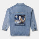 Élevez votre style hivernal avec cette élégante veste en denim, avec un design captivant de chouette de grange dans une scène enneigée pittoresque. Le chouette gracieux est représenté sur une branche sous une lune brillante, dans un style d'aquarelle attrayant. Les mots 'Silent Night' apparaissent sous l'image dans la typographie de script. Appréciez la fusion de la nature, de la mode et de l'esprit festif en ajoutant cette veste à votre collection.