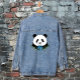 Portrait d'un mignon Ours de Panda avec une fleur de lotus bleu dans un fond vert