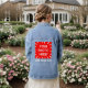 Créez votre propre design unique de veste en denim avec ce modèle personnalisé de veste en denim Photo et Texte. Faites votre propre cadeau élégant et drôle en ajoutant vos photos personnalisées, texte et toute image. Choisissez entre mille styles de police et faites votre propre conception de typographie, ajoutez des formes géométriques et des éléments graphiques. La veste de denim personnalisée est disponible pour lui et elle. Une idée cadeau géniale et amusante pour les amis, la famille, le collègue, la fête de bachelor, la fête de bachelorette, le hubby, la femme, grand-père, grand-mère et enfants.