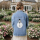 Cette superbe veste en denim est dotée d'un bonhomme de neige blanc et souriant avec des boutons noirs et un chapeau haut de gamme. Il a l'air d'un agent cool et aimerait vous aider à répandre la joie de Noël cette année.