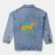 This women's denim jacket features a golden Missouri Fox Trotting Horse silhouette framed with soft, flowing script that highlights the natural elegance of this beloved gaited breed. The design feels warm and timeless, offering a blend of classic western charm and gentle sophistication. Whether you adore their smooth ride or simply love the calm beauty of horses, this piece brings that connection to life. It’s a heartfelt accent for horse shows, barn days, or any cozy moment in between. Treat yourself to a wearable reminder of style and grace.