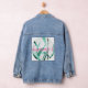 Stylish And Funky Pale Green Plant Summer Vibes Denim Jacket to add to your collection. A cool gift / present idea for all who love custom design personalized items, positive vibes, fresh look, food, yoga, nature, organic theme, healthy things, funky prints etc. Keywords: green, pink, summer, beach, desert.