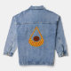 Cette veste en denim a un design moderne du milieu du siècle de tétons répétées en orange et or avec des cercles de vert ou de brun à l'intérieur sur un champ de blanc. Si vous aimez le design mais préférez différentes couleurs, envoyez-moi un message.
