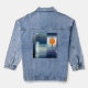 Une superbe veste en denim abstraite bleu Paul Klee vintage, art rétro. Veste en denim de style rétro avec le Harbinger d'Automne de Paul Klee.