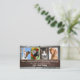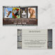 Carte de visite pour un vétérinaire professionnel avec 4 de vos propres photos (en option) sur un mur en brique robuste avec un arrière - plan à panneaux en bois. Au fond, il y a de l'espace pour les rendez-vous.