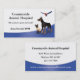 Photos d'un oiseau, chien et chat sur un arrière - plan blanc et bleu moderne et élégant. Grande carte pour les vétérinaires et les entreprises de toilettage ou de toilettage des animaux.