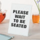 Panneau contemporain noir et blanc "Veuillez patienter pour être placé" adapté aux restaurants et cafés.