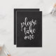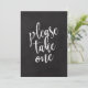 Un élégant panneau de mariage de pointe, avec le texte "Please take one" dans une police de script extravertie, la texture de la brosse ajoute une sensation spontanée et ludique. La couleur arrière - plan peut être personnalisée selon vos besoins et préférences, s'il vous plaît contactez-moi si vous avez une demande spéciale.