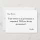 Cette carte d'invitation 5" x 7" "Votre présence est souhaitée en tant que témoin ou garçon d'honneur" est magnifique. Elle est idéale pour le marié. Vous avez trouvé votre femme, mais vous avez encore besoin de vos amis. Envoyez-leur cette carte pour garçons d'honneur. Si vous envisagez de demander à quelqu'un d'être votre garçon d'honneur pour votre futur mariage, alors pourquoi ne pas choisir cette carte de garçon d'honneur. Cette carte d'invitation personnalisée fera que votre ami, frère, cousin, neveu, fils ou qui que vous choisissiez se sentira spécial. Cette invitation est facilement personnalisable en cliquant sur le bouton "Personnaliser" sous l'image, où vous pourrez modifier le texte, la police et la taille. Vous pouvez inviter vos meilleurs amis avec style avec ces invitations élégantes. Elle convient au témoin ou aux garçons d'h