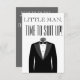 Petit homme il est temps de s'habiller avec smoking sur le devant. Personnalisé avec le nom du porteur de bague, message, nom du marié et une date donnée ou la date du mariage.