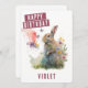 Une carte d'anniversaire mignonne avec un lapin au printemps sur le devant avec "Joyeux anniversaire" dans une police blanche, tout casquette en gras. Personnalisez le devant en ajoutant votre ou vos nom(s). L'arrière de la carte offre de l'espace pour votre message dactylographié ou manuscrit.