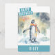 Une jolie carte d'anniversaire en aquarelle avec un manchot célébrant l'hiver sur le devant avec "Joyeux anniversaire" en caractères gras blanc, tout casquette. Personnalisez le devant en ajoutant votre ou vos nom(s). L'arrière de la carte offre de l'espace pour votre message dactylographié ou manuscrit.