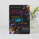 Invite your guests to a super fun and creative celebration with this Vibrant Paint Splash Art Party Kids Birthday Invitation! Perfect for a messy, creative art-themed party, this design features bright, neon-colored paint splatters and drips set against a stylish black background. This invitation is ideal for a birthday party or any age celebration for a young artist. The modern, colorful script and bold typography make the event details pop. All text is easy to personalize—customize the name, age, date, time, location, and RSVP details to fit your event! Great for an Art Class Party, Painting Birthday, or any Creative Gathering.