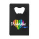 Libérez votre fierté avec l'ouvre-bouteille de carte de crédit Vibrant PrideVibe de Sarendestini Designs. Doté du logo Rainbow Heart PrideVibe sur un arrière - plan noir élégant, cet ouvre-boîte compact et élégant allie fonctionnalité et inclusion. Idéal dans votre porte-monnaie ou votre poche, il est parfait pour la fierté sur le pouce et l'utilisation pratique de toute célébration. Améliorez votre expérience d'ouverture de boisson avec cet accessoire vibrant et significatif.