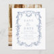 Annoncez votre journée spéciale avec un floral d'inspiration victorienne enregistrez la date en bleu poussiéreux élégant. Ce design d'inspiration française présente des motifs floraux complexes qui évoquent une romance et un raffinement intemporels. La douce couleur bleue poussiéreuse apporte une touche sereine et raffinée, parfaite pour donner le ton d'un mariage classique et élégant. Idéal pour les couples à la recherche d'un style gracieux mais unique, cette date sauve mélange charme vintage et beauté moderne, assurant à vos invités une célébration vraiment spéciale.
