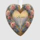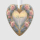 Cet ornement présente un coeur doré victorien décoré de fleurs délicates en rose et bleu sur un arrière - plan romantique aux couleurs pastel douces. Parfait pour la Saint Valentin, les anniversaires et plus ! Texte personnalisé.