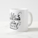 Jumbo Certains jours, une tasse de joe de taille régulière ne le fera pas. Quand vous avez besoin d'une dose de caféine en plus, utilisez votre tasse XL de Zazzle. Peut contenir jusqu'à 591 ml. Idéal pour des soupes, céréales, glaces et du chili aussi ! Cette tasse géante à une anse en forme de C pour une utilisation confortable. Dimensions : Hauteur : 4,5" Diamètre : 3,9" Capacité : 20 onces Micro-ondes et lave-vaisselle sans danger Construction céramique forte Satisfait ou dépasse les exigences de la FDA en matière de salubrité des aliments et des boissons Conseil du concepteur : Pour assurer l’impression de haute qualité, veuillez noter que l’aire de conception personnalisable de ce produit mesure 4" de haut x 10,5" de large