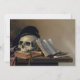 Still Life With Skull, Books, Flute and Pipe (1632-1660) du peintre hollandais Harmen Steenwyck (c.1612 - après 1656) est une puissante vanitas encore vie reflétant les thèmes de la mortalité, de la connaissance et la nature éphémère de la vie. Le crâne, associé à des livres, à une flûte et à une pipe, sert de rappel des plaisirs intellectuels et terrestres qui s'estompent inévitablement avec le temps. La maîtrise de l’ombre et de la lumière de Steenwyck crée une composition dramatique et contemplative caractéristique de l’âge d’or hollandais. Parfait pour l'art mural, les cartes de voeux ou les cadeaux, ce chef-d'oeuvre vintage est aussi un choix audacieux et sophistiqué pour la décoration d'Halloween. Utilisez les outils de conception pour ajouter du texte personnalisé ou personnaliser l'image.