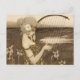 Vierge grecque vintage avec carte postale de harpe