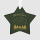 Personnalisez, Noël religieux, Vierge Marie, Saint Joseph et Jésus, les arbres de Noël scintillants sous le ciel étoilé vert étincelant. Sachez que vous avez une photo !