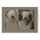 Un assortiment de grands objets avec deux photos de chiens de mouton anglais anciens modifiées de façon créative.