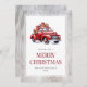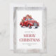 Aquarelle rustique Joyeuse carte de Noël avec un vieux camion rouge portant des cadeaux de Noël à l'intérieur d'un cadre en bois rustique. Personnalisez facilement cette carte de Noël de camion rouge avec votre nom de famille et l'année.
