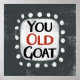 "You Old Goat" est un design de texte amusant avec une forme d'accent blanc entourée de points blancs texturés.