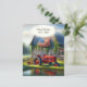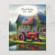 Vieux tracteur rouge près d'une grange en bois rustique avec un drapeau américain.