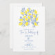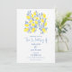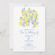 Cette faire-part de mariage joyeuse rayonne sur le bonheur avec son thème jaune et bleu vif. Le dessus de la carte présente une charmante illustration de branche de citron, éclatant de citrons jaunes vibrants et de feuilles bleus délicats. Le script manuscrit "Le Mariage de" ajoute une touche d’élégance et de personnalité, tandis que les noms du couple et les détails du mariage sont clairement affichés dans une police serif propre. La combinaison d'un design ludique et d'une typographie classique fait de cette invitation une invitation idéale pour les mariages ensoleillés et joyeux, que ce soit au printemps ou en été. C’est un moyen moderne et frais pour les invitations de célébrer leur journée spéciale.
